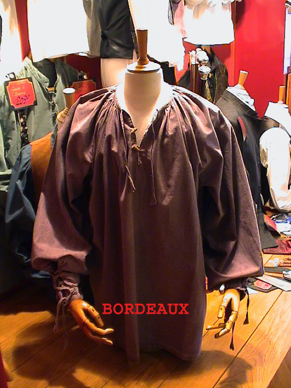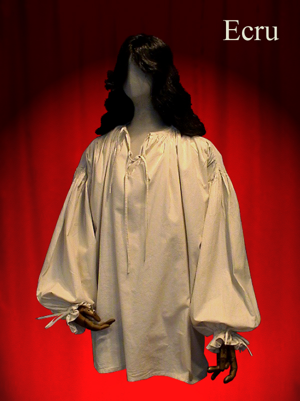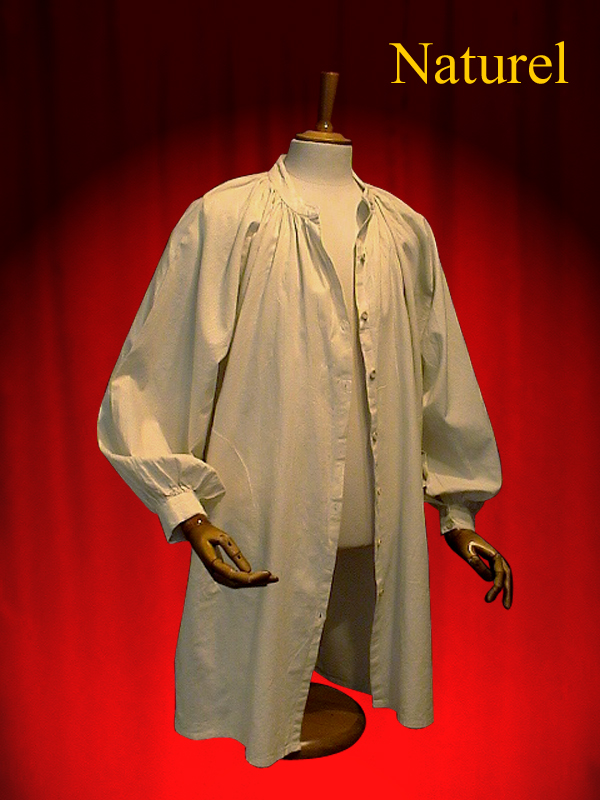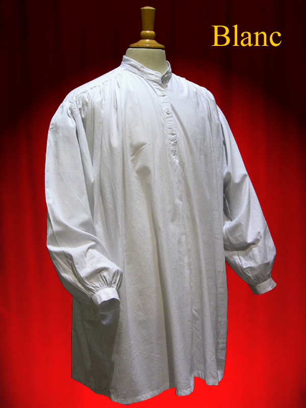 Blouses et chemise sans col de peintres, à l'ancienne. Hommes et femmes. Chemise ample, froncée, manches bouffantes. Col ras. Théâtre, reconstitution, GN.