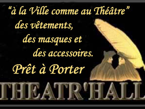 | Prêt à porter pour tout public de vêtements inspirés du carnaval, du monde du spectacle et du théâtre. (costume queue de pie, costume redingote, chapeau melon, chapeaux haut de forme, gilets, pantalons anciens, perruques, chemises à jabot dentelle et masques de Venise). Mariages, soirées, spectacles. VENTE SUR STOCK - Tailles à disposition. Vous pouvez :